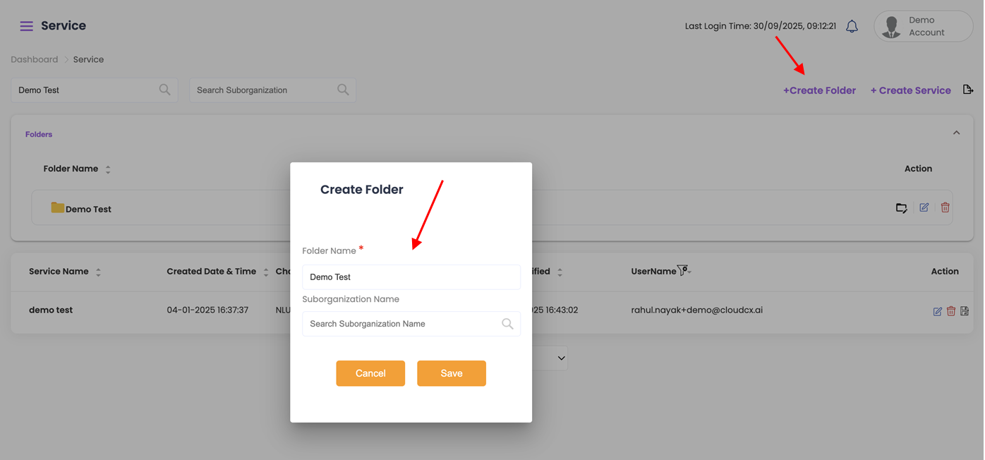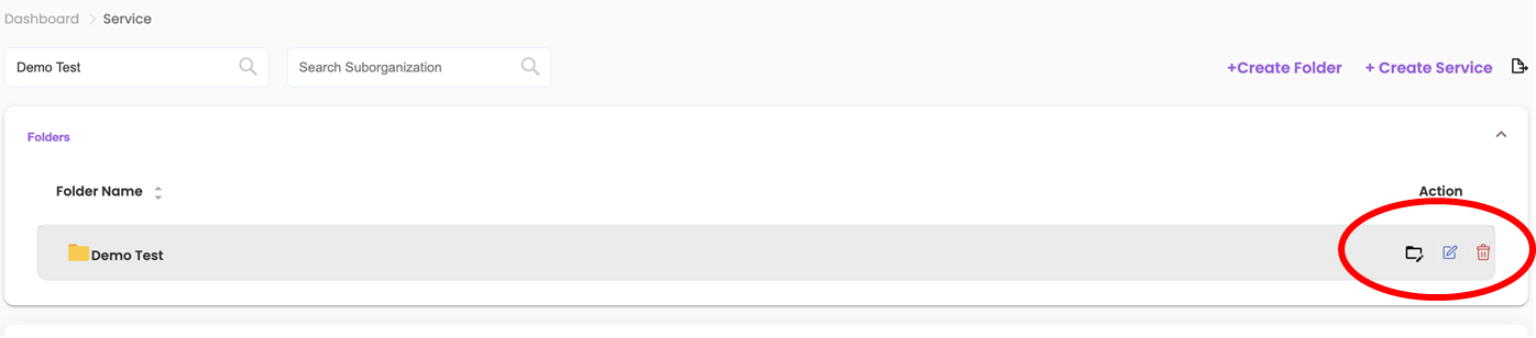 A Folder Service allows you to organize all your services in one place, making management and navigation easier. By grouping services into folders, you can quickly locate, edit, or manage multiple services within a sub-organization.