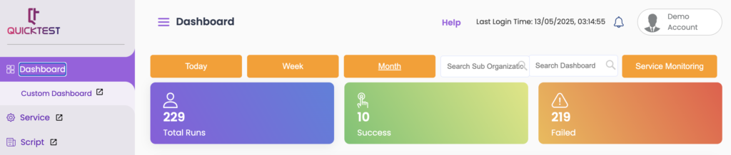Activate ‘Re-Run Failed’ to retry failed tests automatically. Set:- ReRun Count: Number of retry attempts (up to 5).