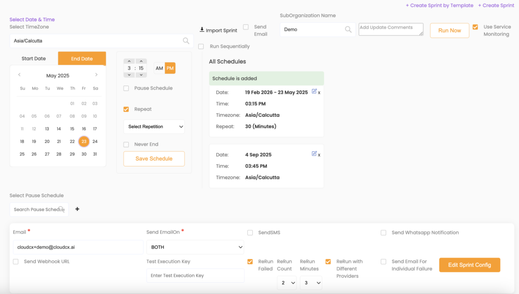 - To temporarily pause testing during specific times, check the ‘Pause Schedule’ option.