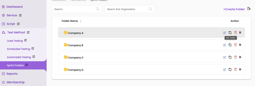 - Click on ‘+ Create Folder’, enter a suitable folder name, and optionally select a SubOrganization Name.