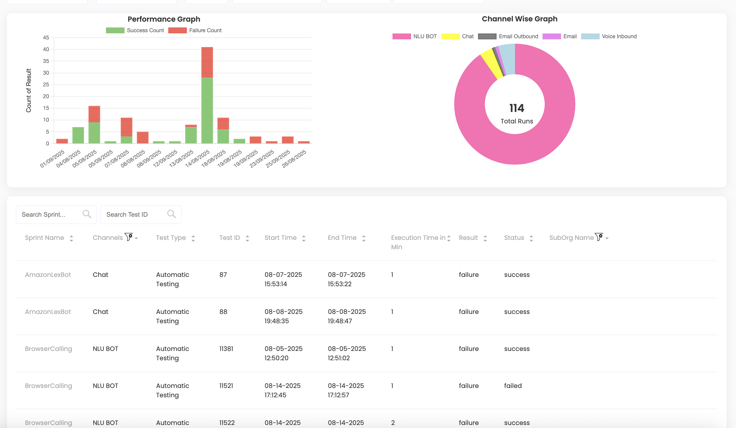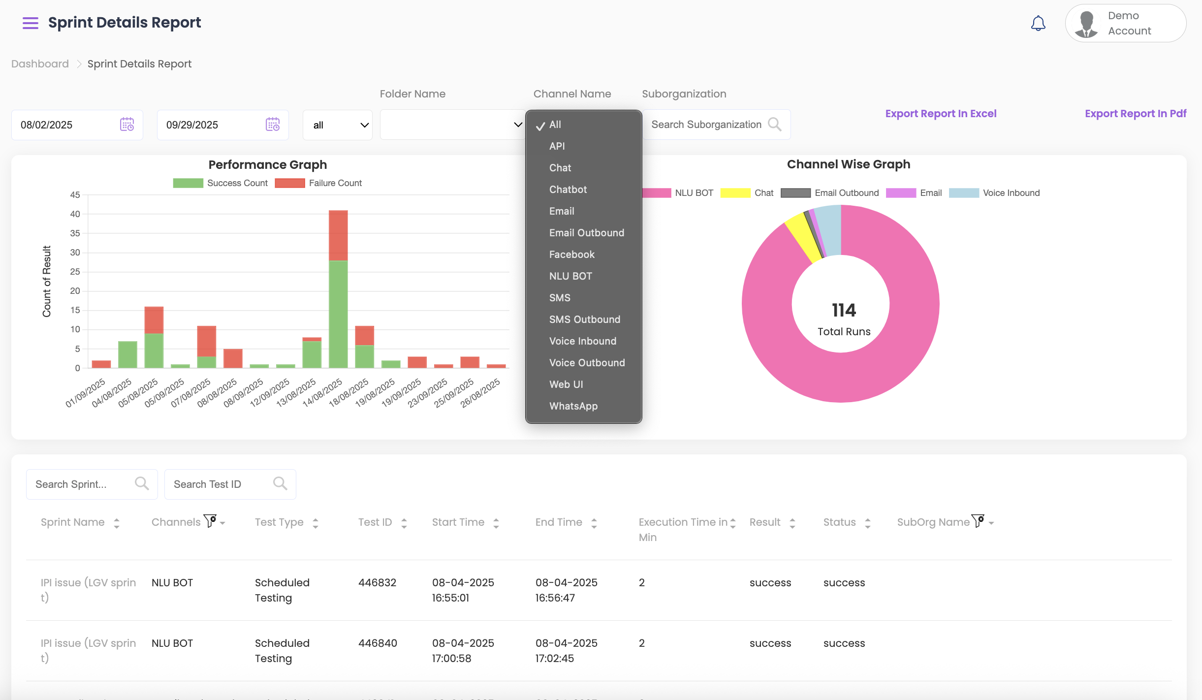 - To view the test history of any test result, click on Sprint Name. A detailed report of the sprint will be displayed including: