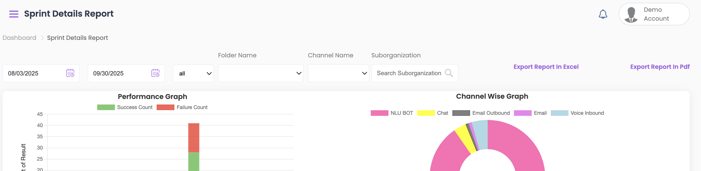 The Sprint Details report can be exported as PDF or Excel for offline review.