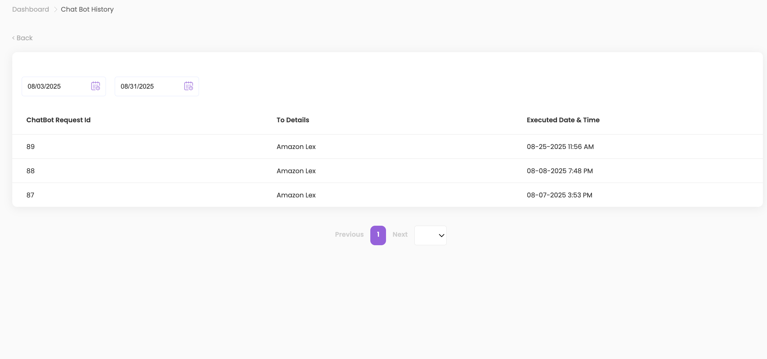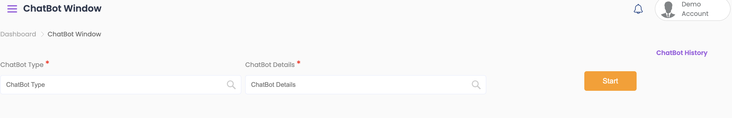 - To review past interactions, click on ChatBot History.