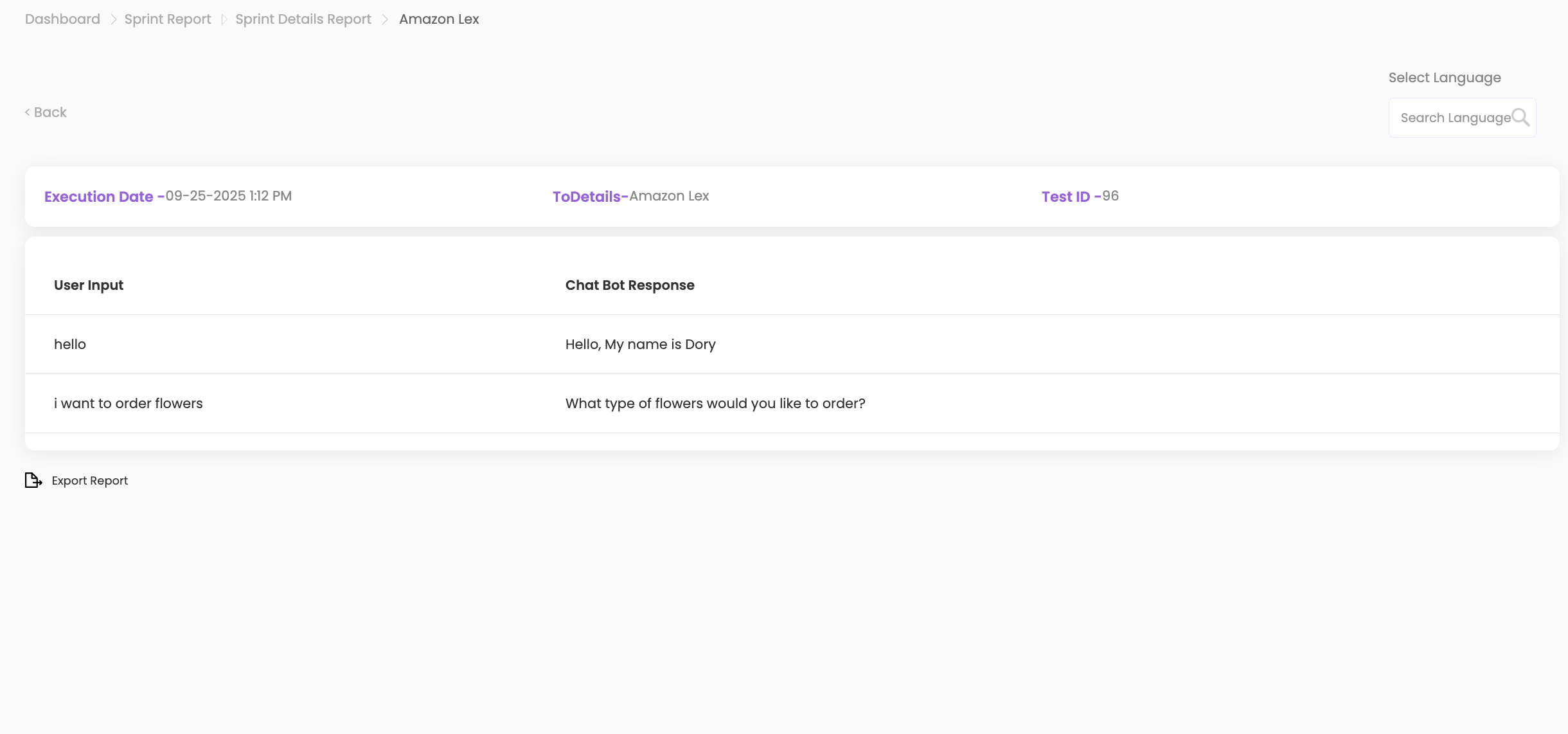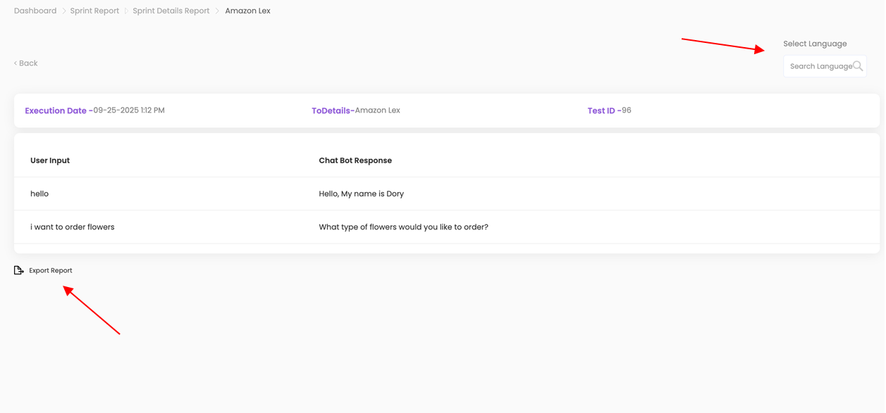 - Change Interaction Language: Select a language from the Select Language dropdown to convert the interaction into another language (e.g., English to Spanish).